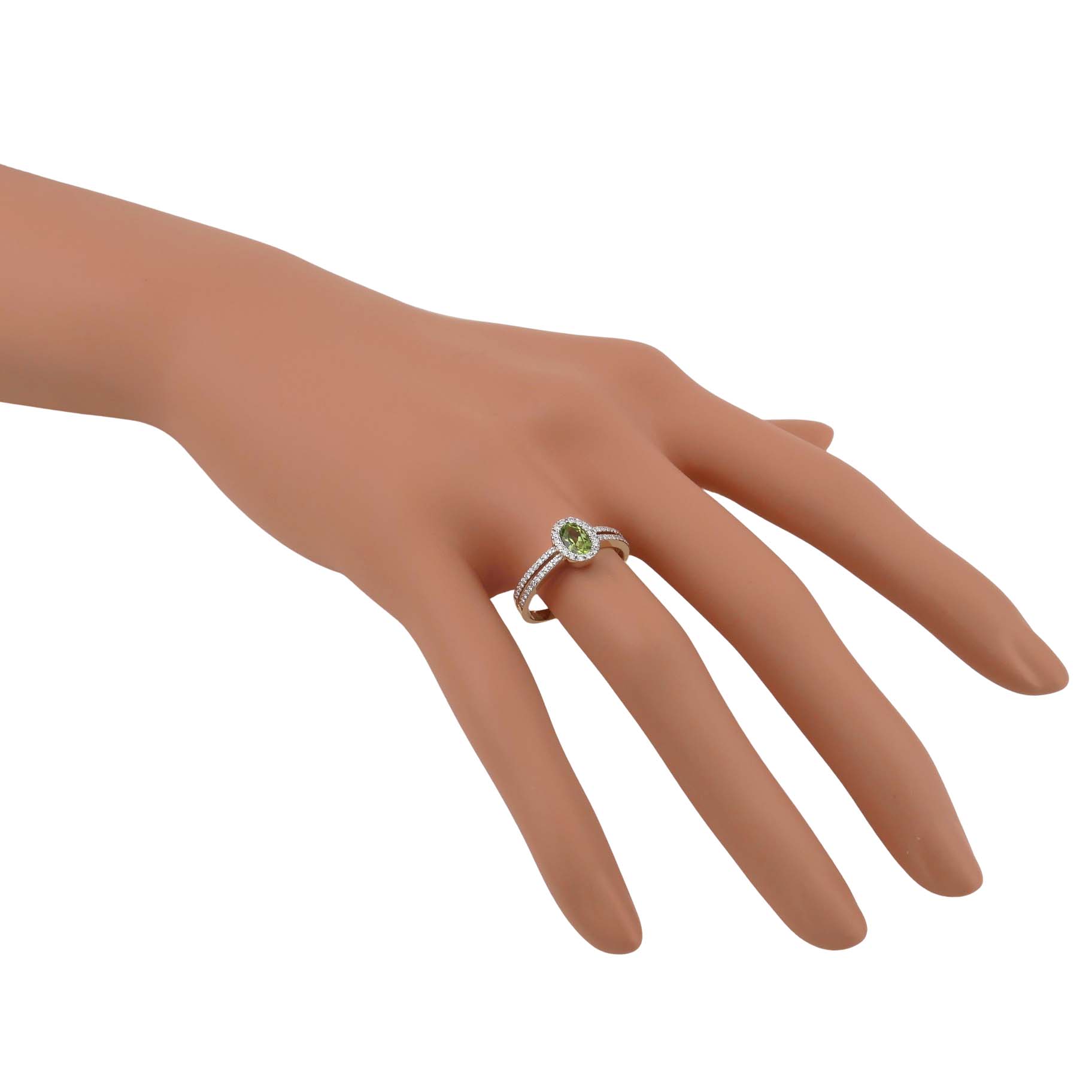 Das Gesamtgewicht der Brillanten beträgt 0,24 ct. Der Peridot wiegt 0,49 ct.