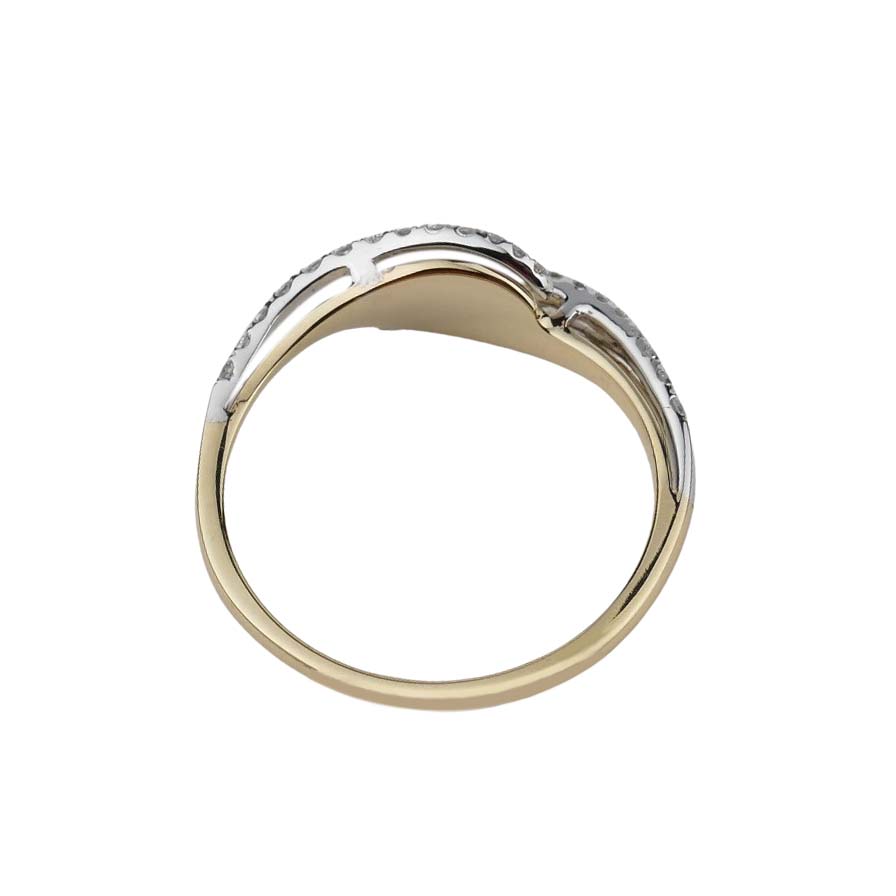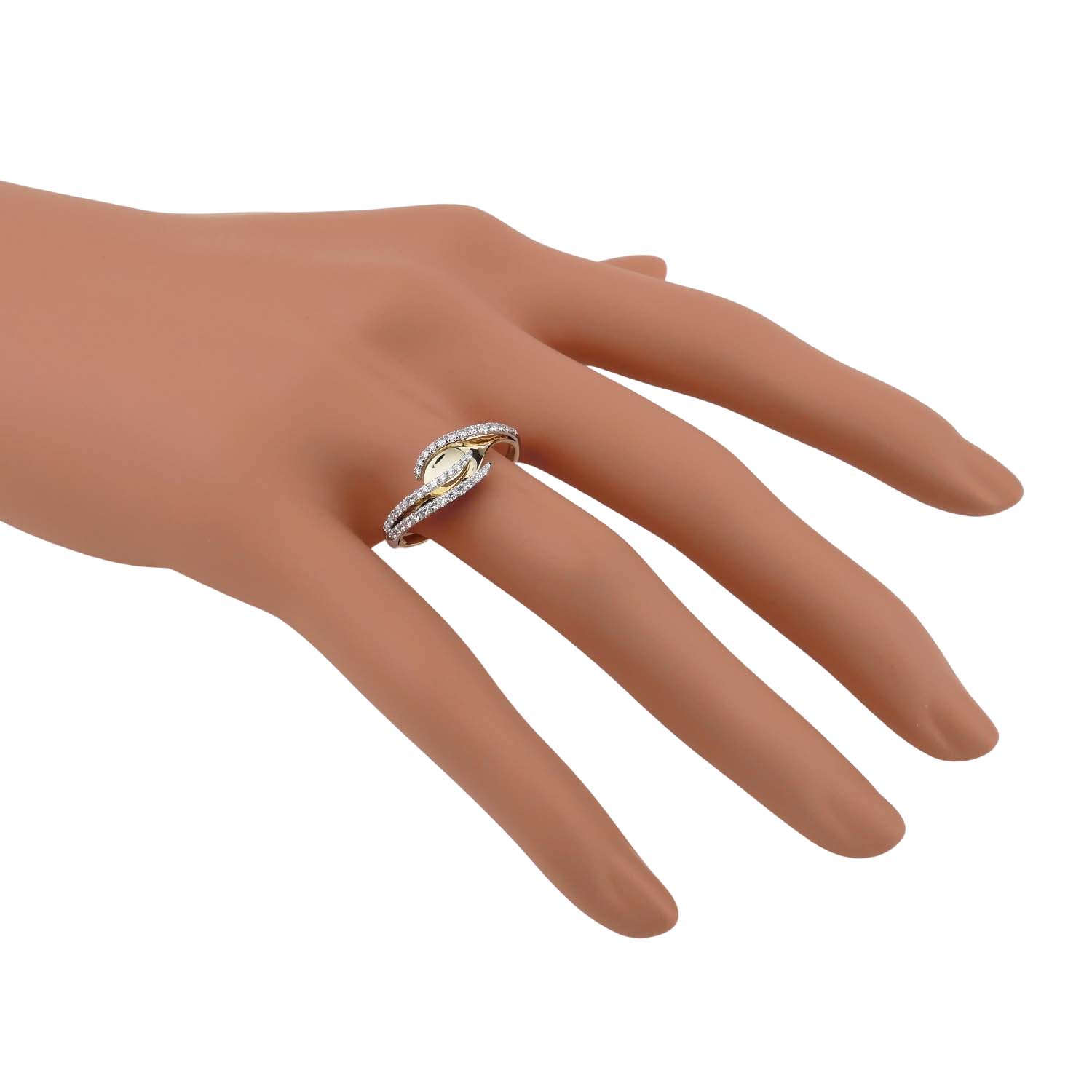 Dieser Brillantring überzeugt mit seinem schwungvollen Design und seiner Zweifarbigkeit, die ihn zu vielen anderen Schmuckstücken kombinierbar macht.