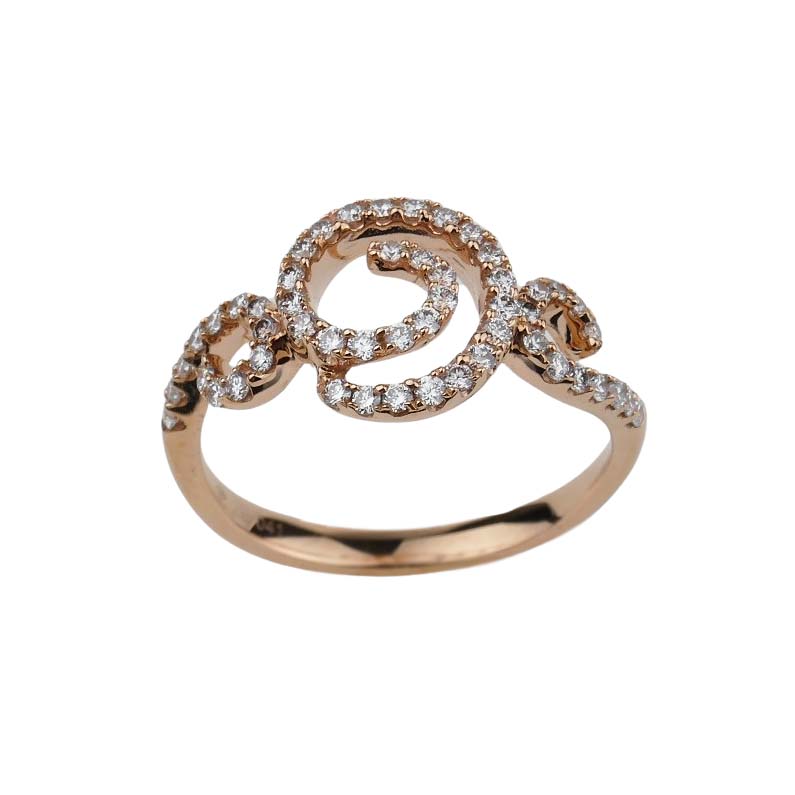 Ein unwiderstehlicher, luxuriöser Damenring aus hochwertigem Roségold 750/000. Der Ring ist oben mit Brillanten ausgefasst (w/si), die insgesamt 0,41 ct. wiegen.