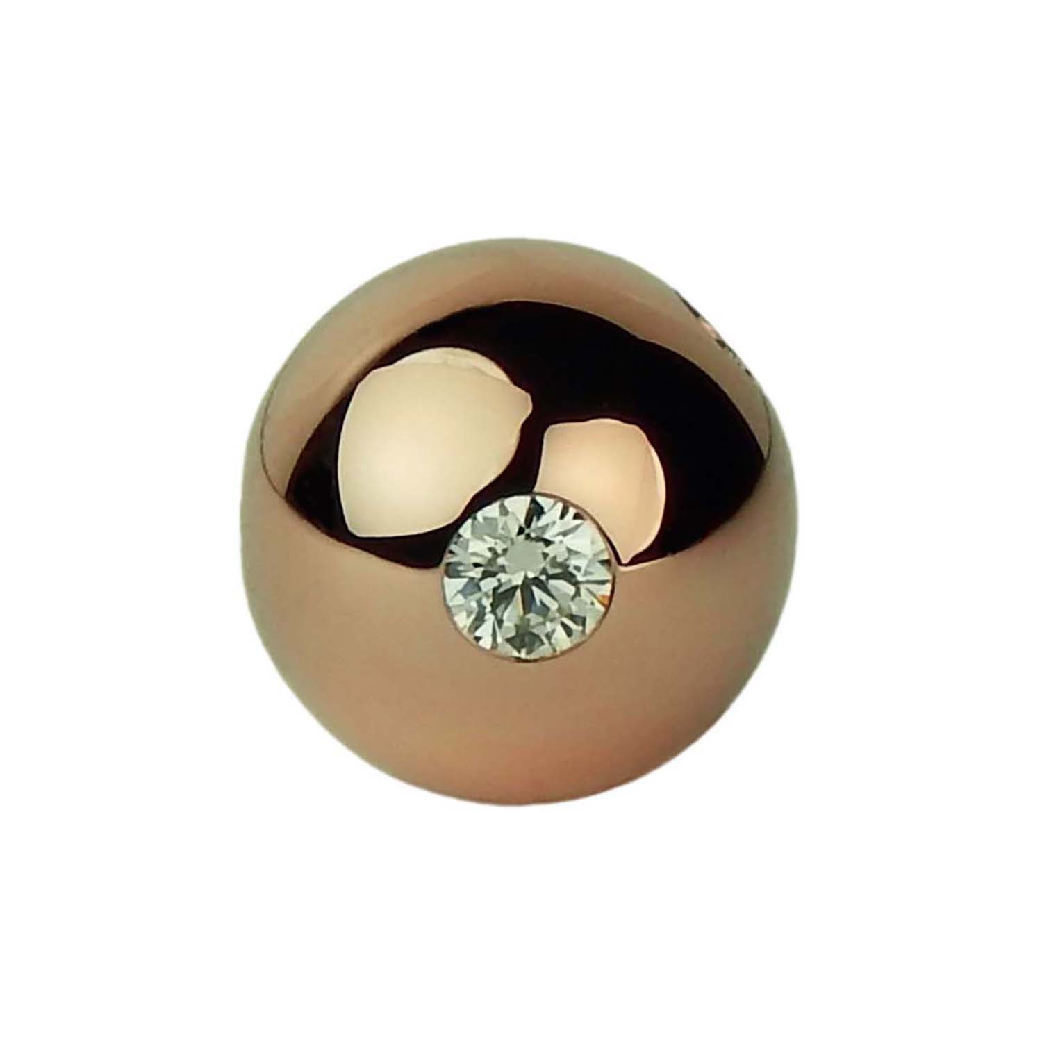 Die polierte Kugel strahlt in einem sanften Roségoldton, besetzt mit einem strahlenden Brillanten (0,12ct., w/vsi).