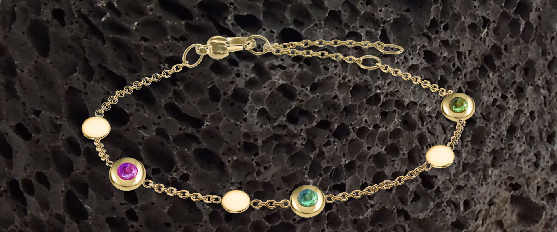 Modisches, doppelreihiges Titanarmband von Boccia mit Turmalincabochons. Das Armband lässt sich in den Längen 17,5, 19 und 21 cm tragen. Als Verschluss dient ein Karabiner Reintitan lässt sich wegen der Leichtigkeit des Materials sehr angenehm tragen und ist nickelfrei.