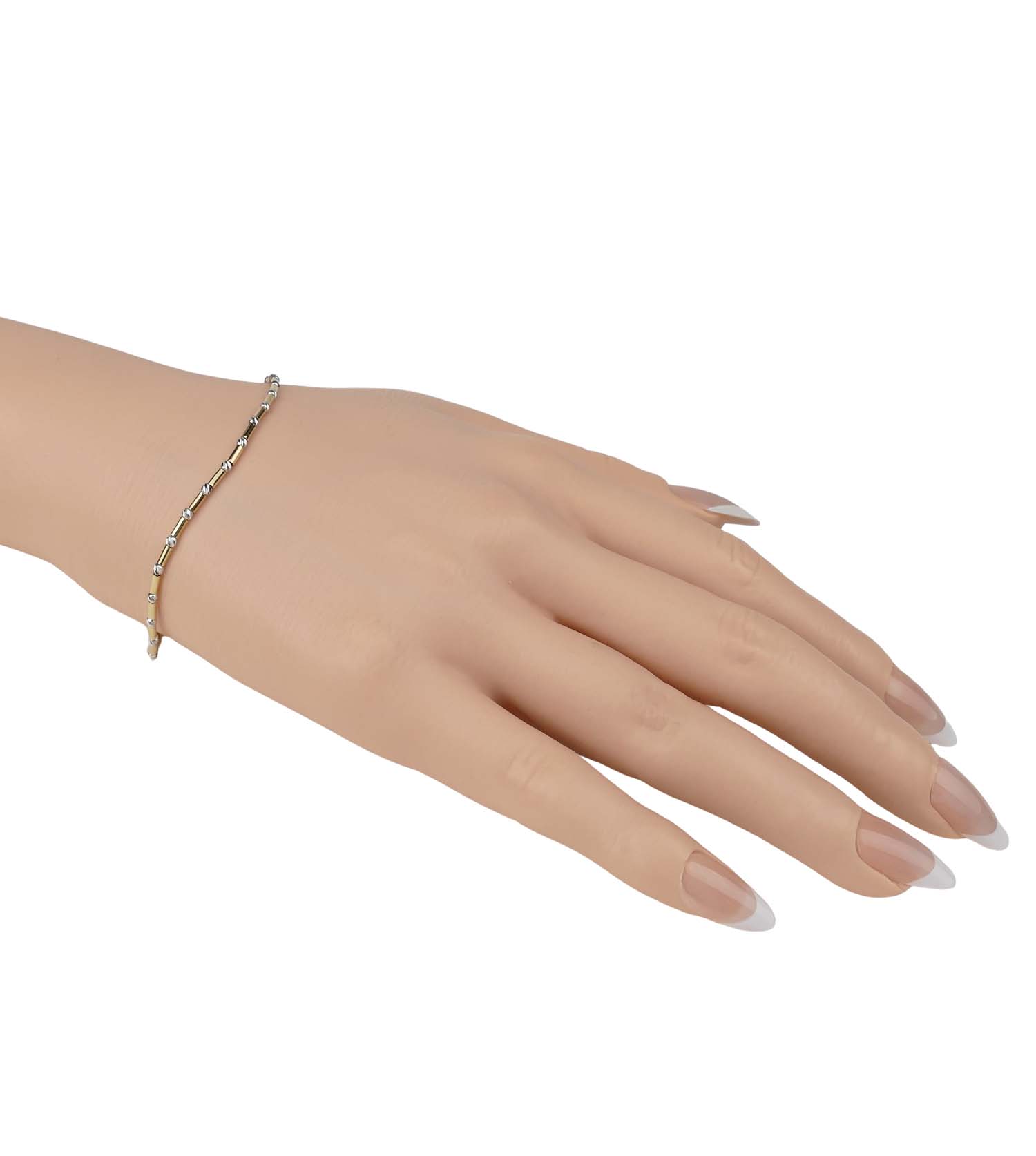 Das zierliche Armband aus Gelbgold und Weißgold 585/000 hat eine besonders reizvolle Optik, denn die kleinen Weißgoldkügelchen glitzern durch die Facettierung besonders schön.
