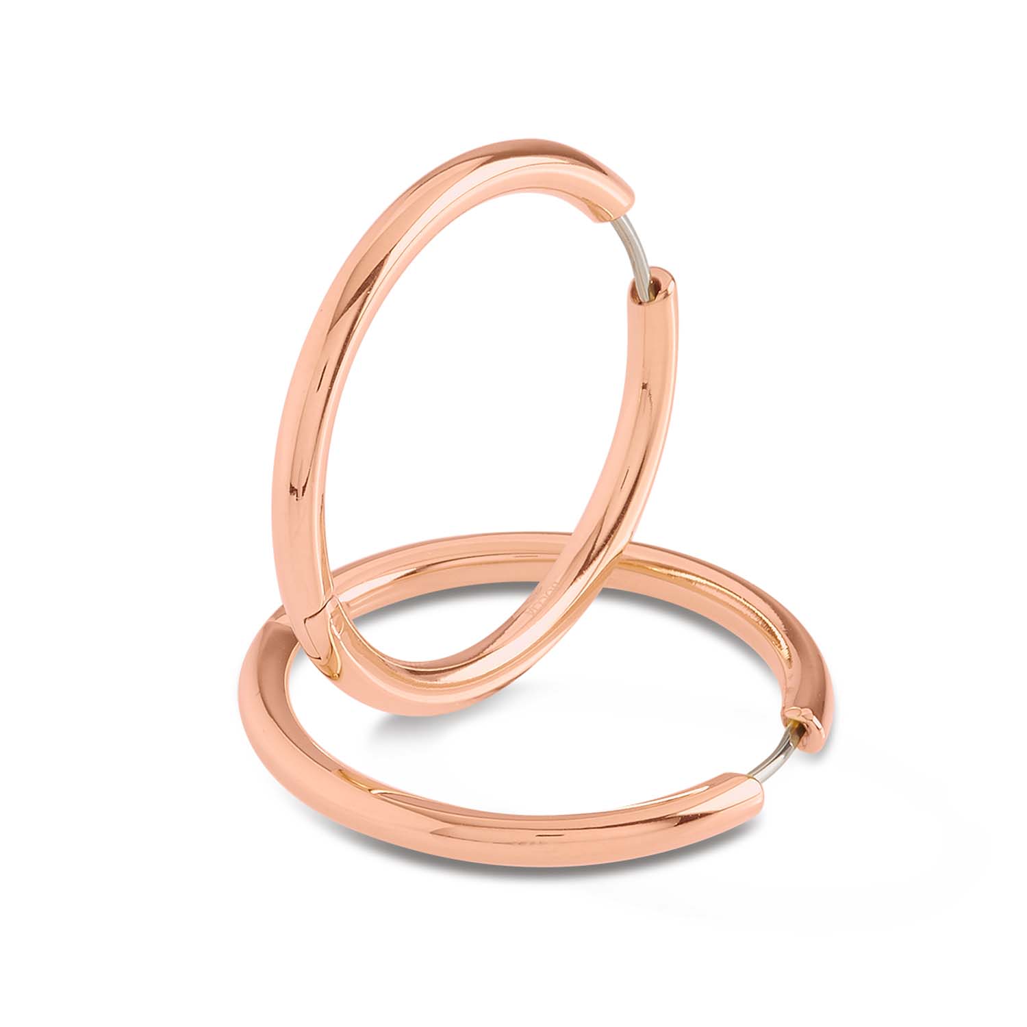Diese schlichten Creolen aus roségold plattiertem Reintitan von Boccia sind wegen der Leichtigkeit des Materials sehr angenehm zu tragen.