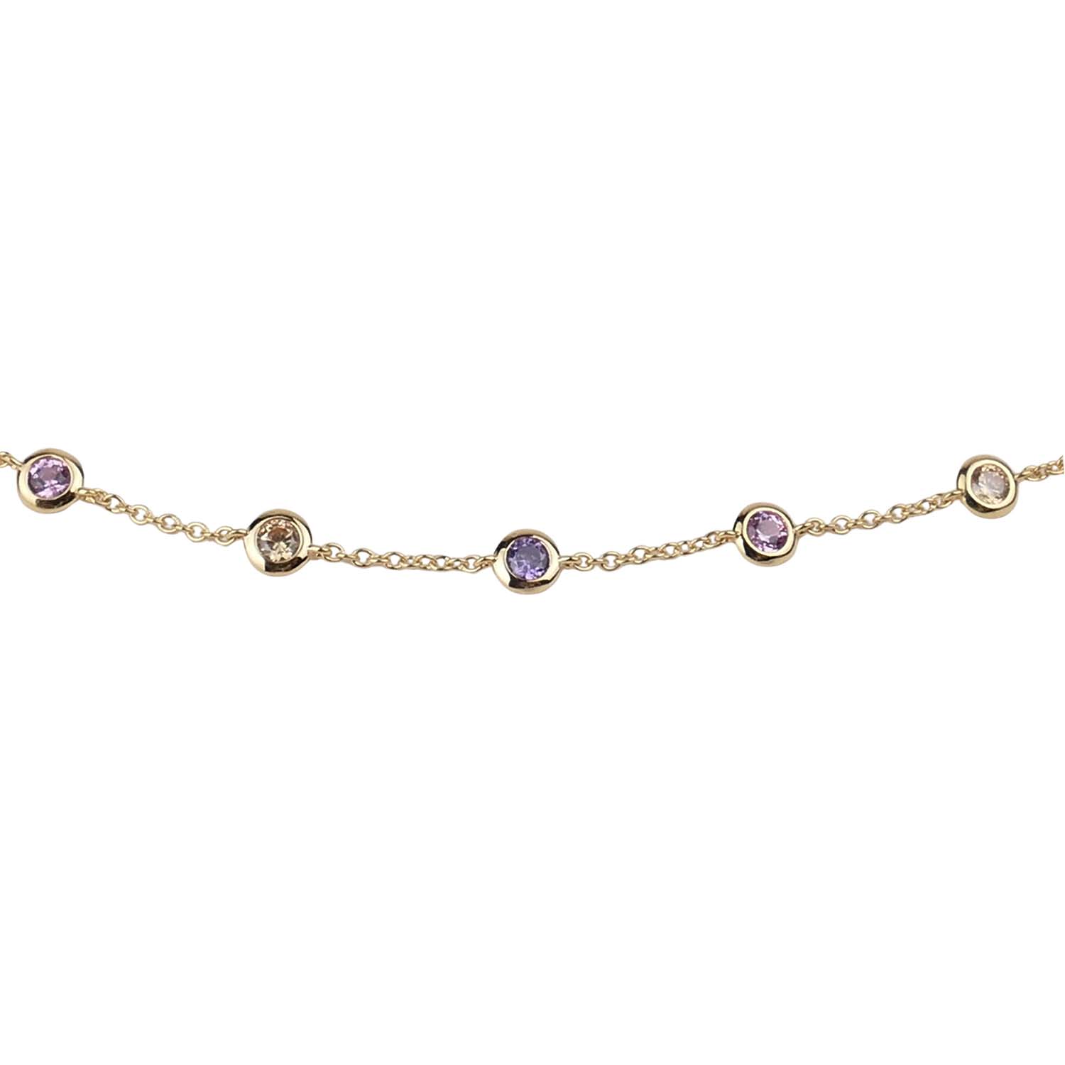 Das verspielte Armband im edlen Goldlook von Ratius ist mit fröhlich bunten Zirkonia besetzt.