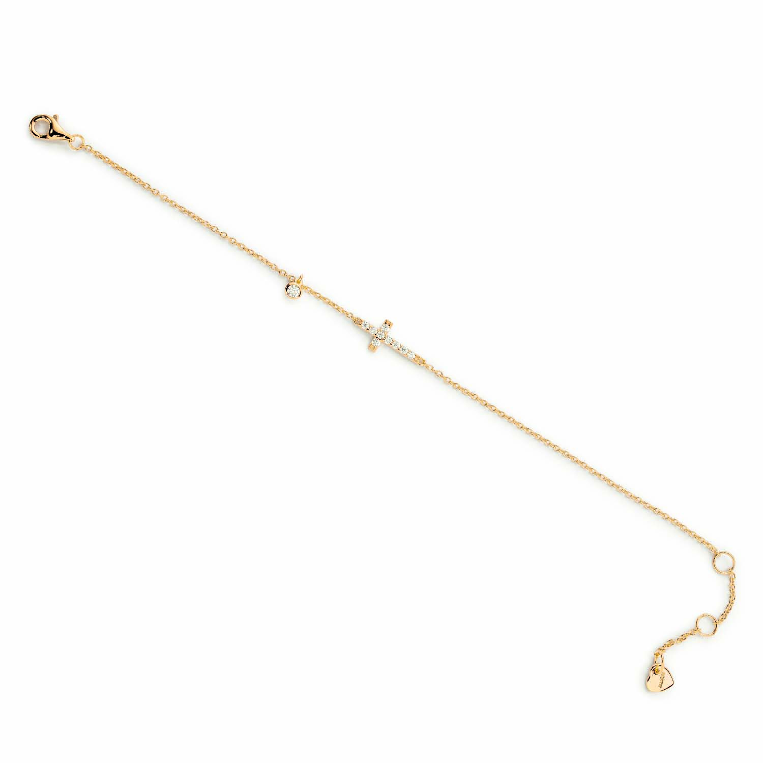 Modisches Armband aus goldplattiertem Silber mit zirkoniabesetztem Kreuz von Ratius.