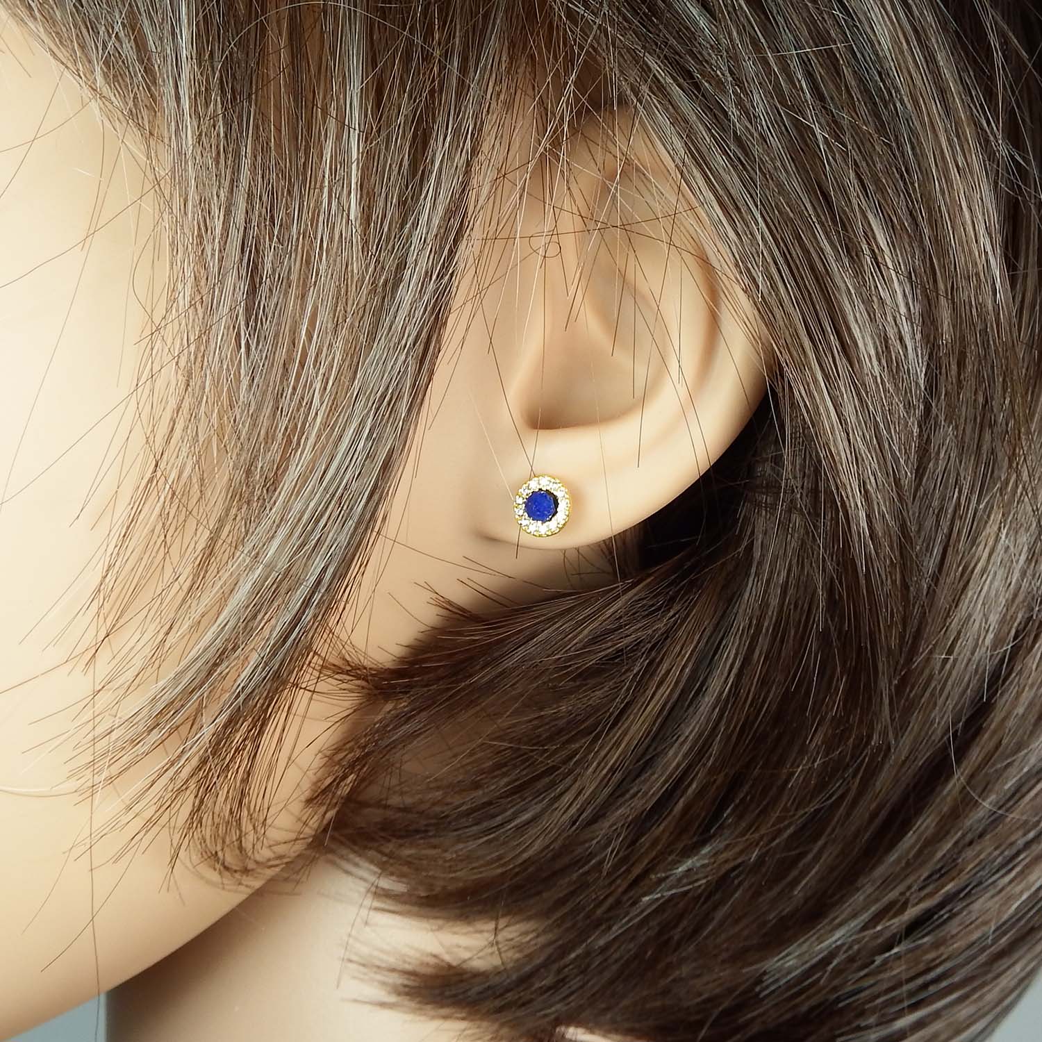 In den zierlichen Ohrsteckern Arenia von Bernd Wolf werden die facettiert geschliffenen Lapislazuli von funkelnden Zirkonia eingerahmt.