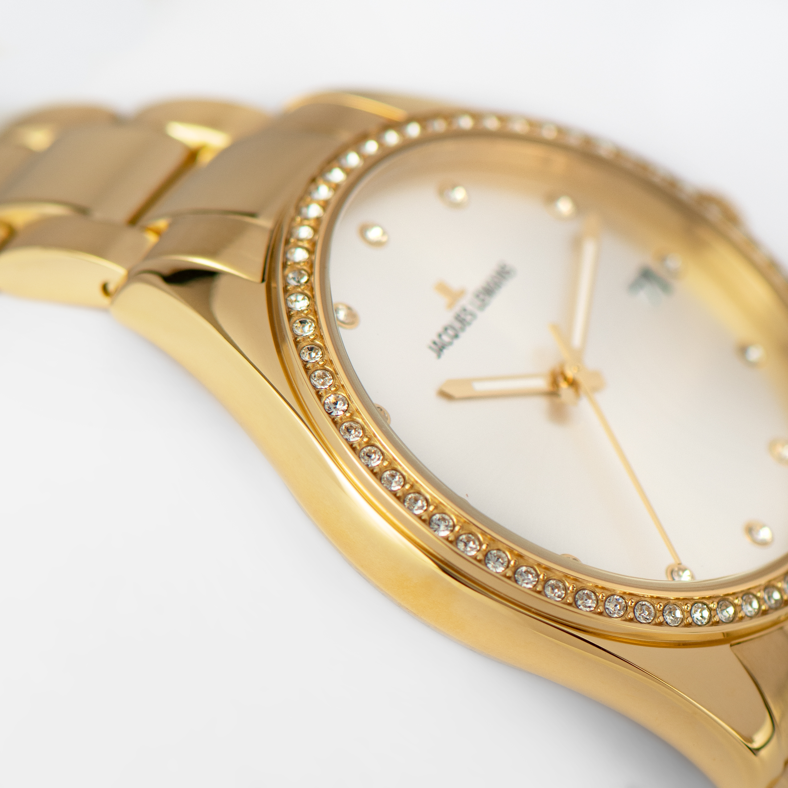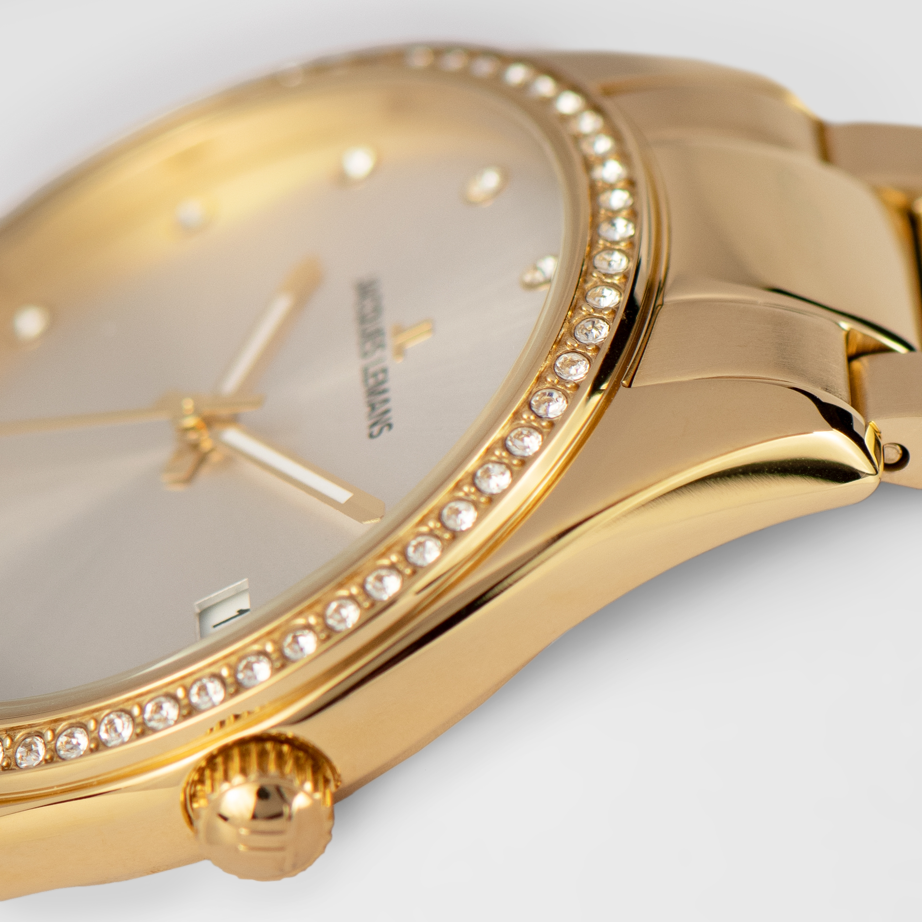 Jacques Lemans Damenuhr Derby Edelstahl ionen-goldplattiert mit Swarovski-Steinen