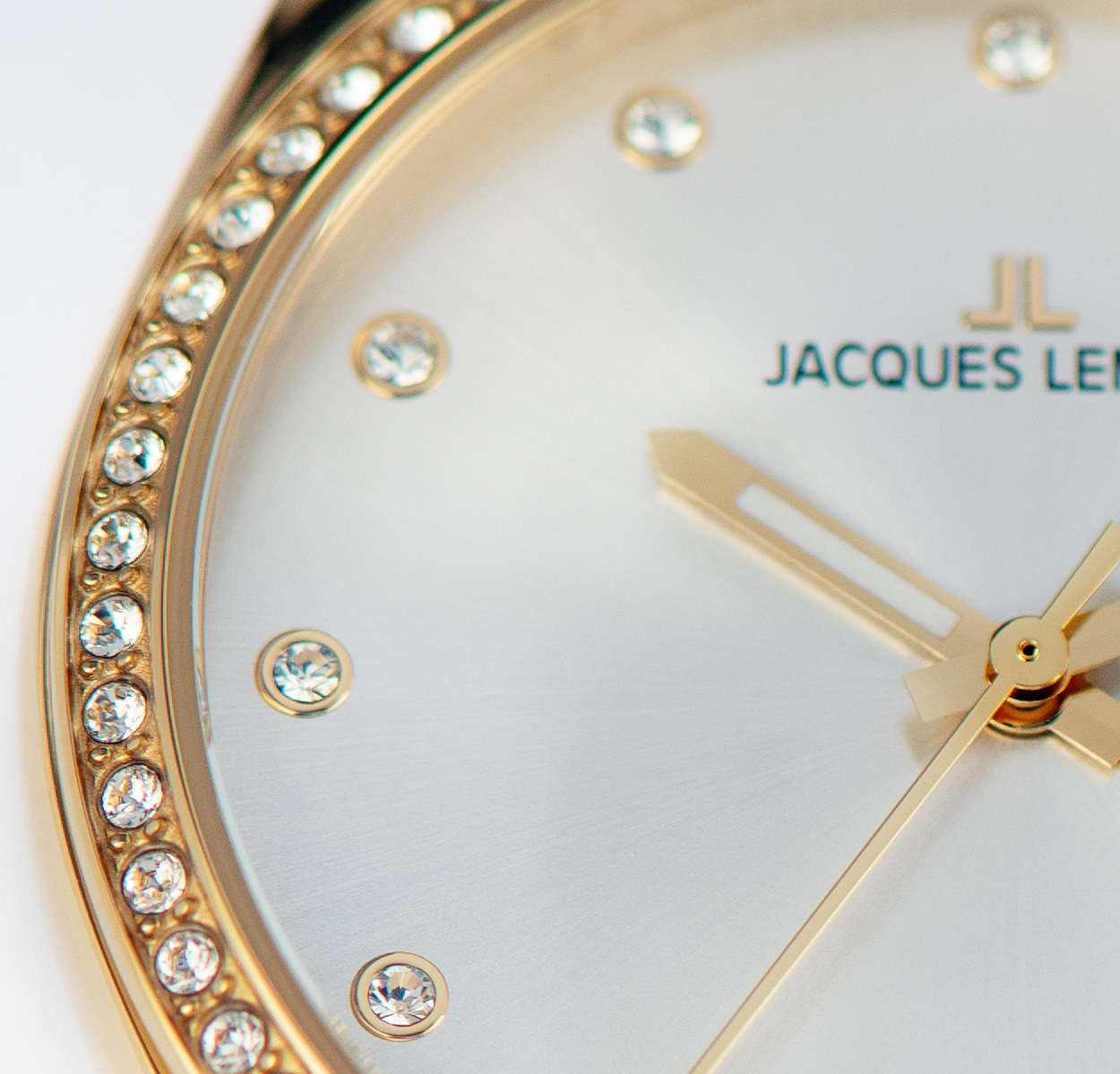 Eine schicke, 100 m wasserdichte Damenuhr von Jacques Lemans mit faszinierendem Sunray-Zifferblatt.