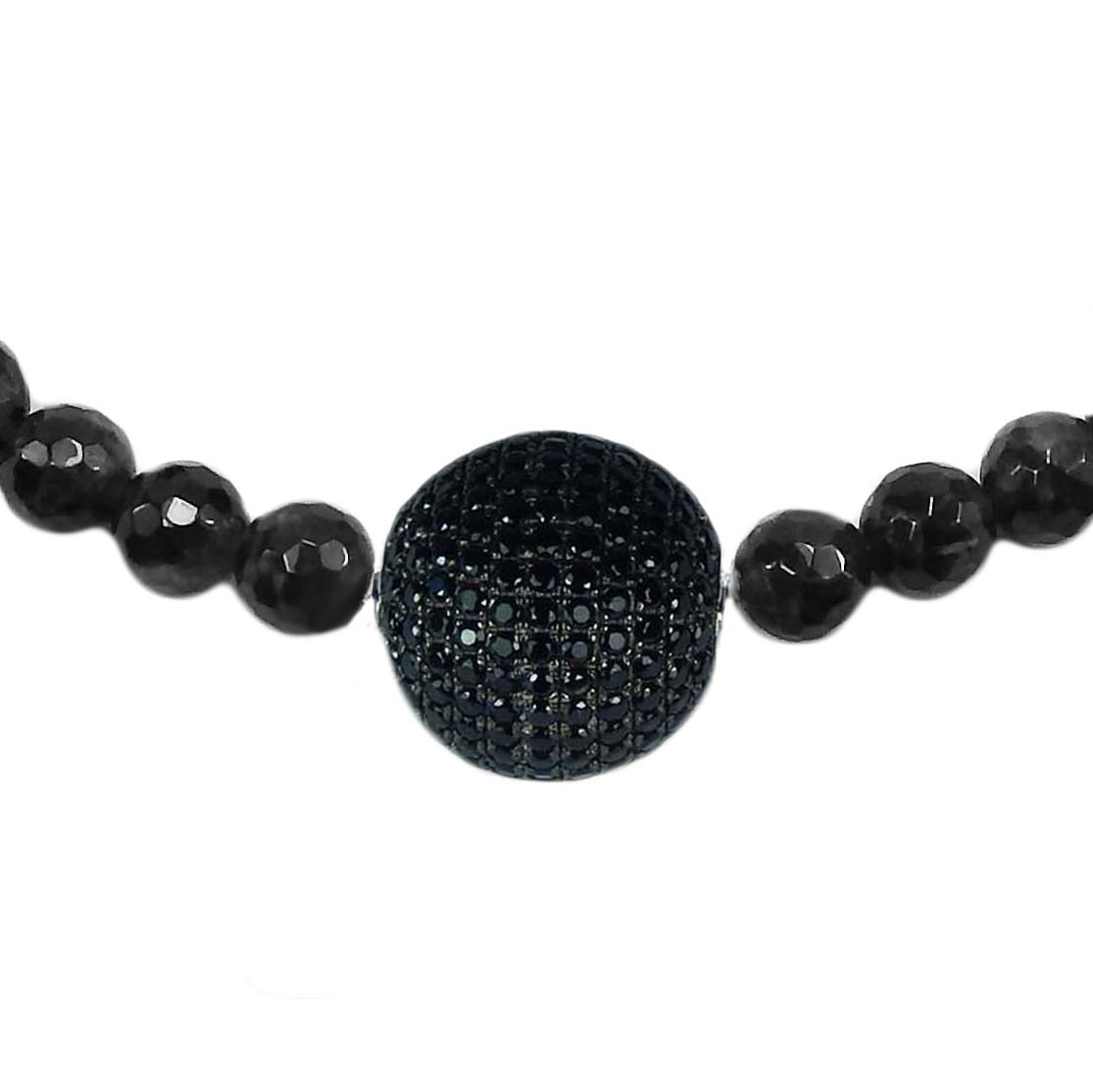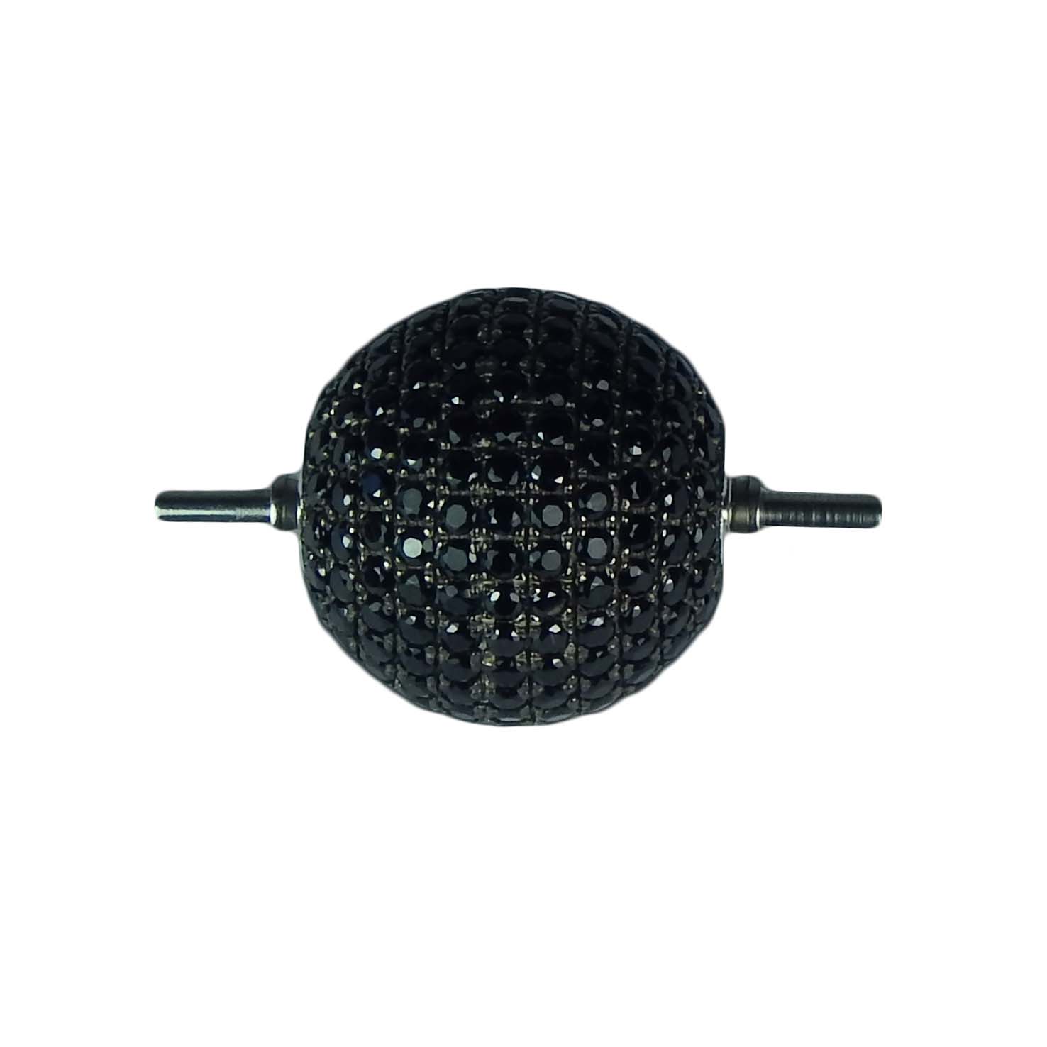 Die Schließe aus rutheniertem Sterlingsilber ist komplett mit schwarzen Zirkonia besetzt und hat einen Durchmesser von 15 mm.