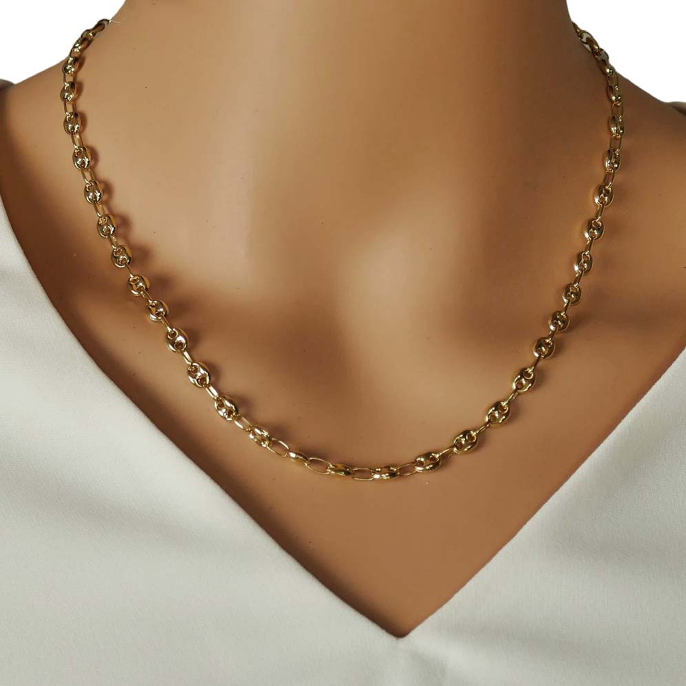 Eine Halskette aus Gelbgold 375/000 im aktuellen Schiffsankermuster mit einer Breite von 5 mm.