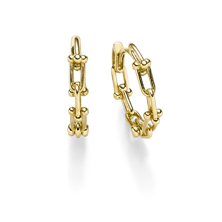 Extravagante Scharniercreolen aus Gelbgold 585/000 mit einer Breite von 3,5 mm.