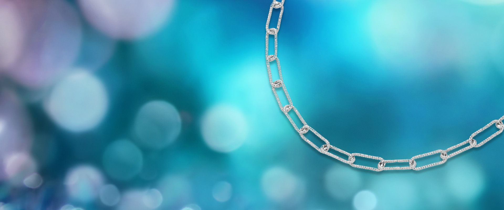 Königskette aus Sterlingsilber Diese 9 mm breite, flache Königskette aus 925er Silber erhält durch die Rhodinierung eine exklusive Weißgoldoptik und ist vor dem Anlaufen geschützt. Die Kette ist 5 mm stark und wiegt 32,9 g. Als Verschluss dient ein großer Schmuckfederring mit einem Durchmesser von 15 mm.