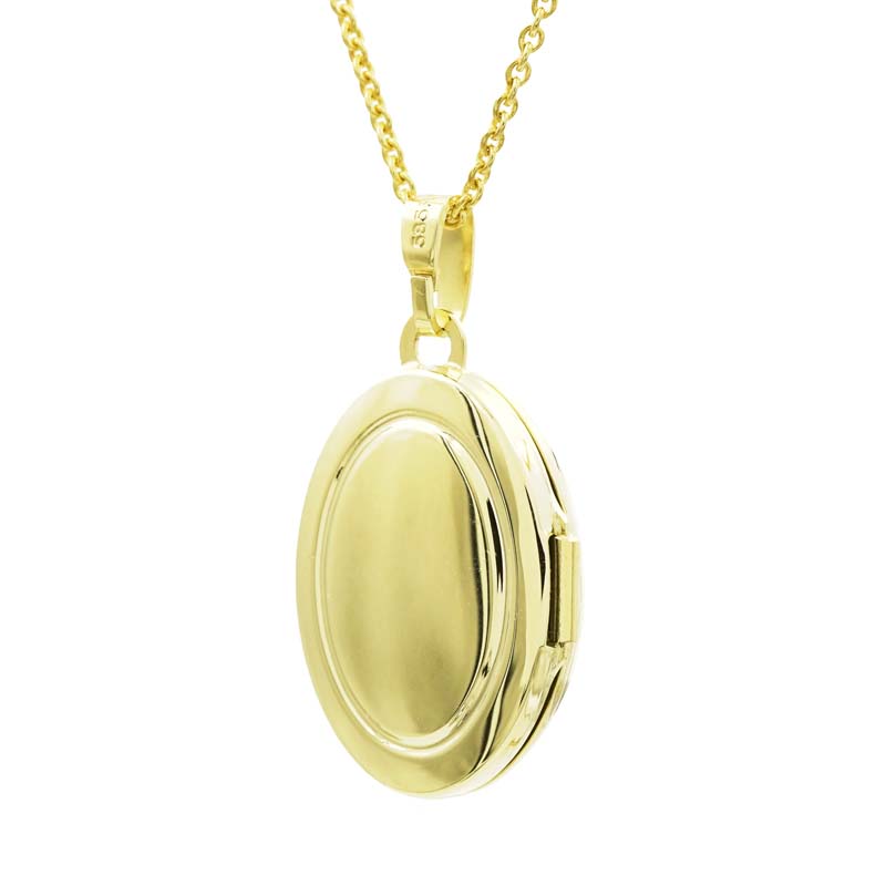 Dieses kleine Medaillon aus goldplattiertem Sterlingsilber lässt sich von beiden Seiten tragen und auch gravieren.